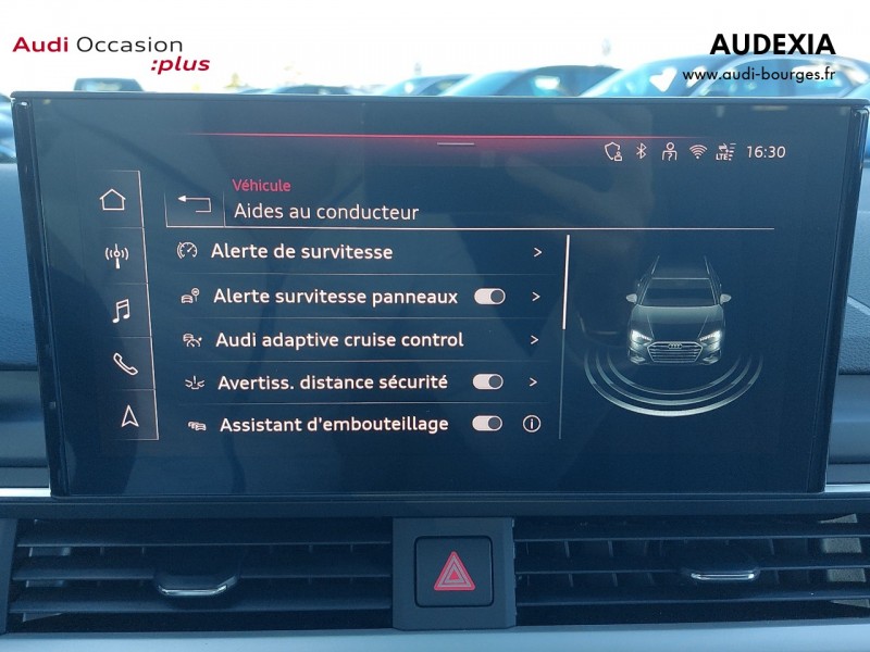 Audi Virtual cockpit plus combiné dinstruments entièrement numérique de 12,3" en résolution Full HD, affichage flexible et fonctionnel des informations en fonction des besoins du conducteur, intégration des fonctionnalités MMI dans le combiné dinstruments, affichage de la carte de navigation en modèle de terrain 3D sur lécran couleur, incluant recommandation de repos, possibilité daffichage en mode Dynamique, Sport ou Classique haute résolution