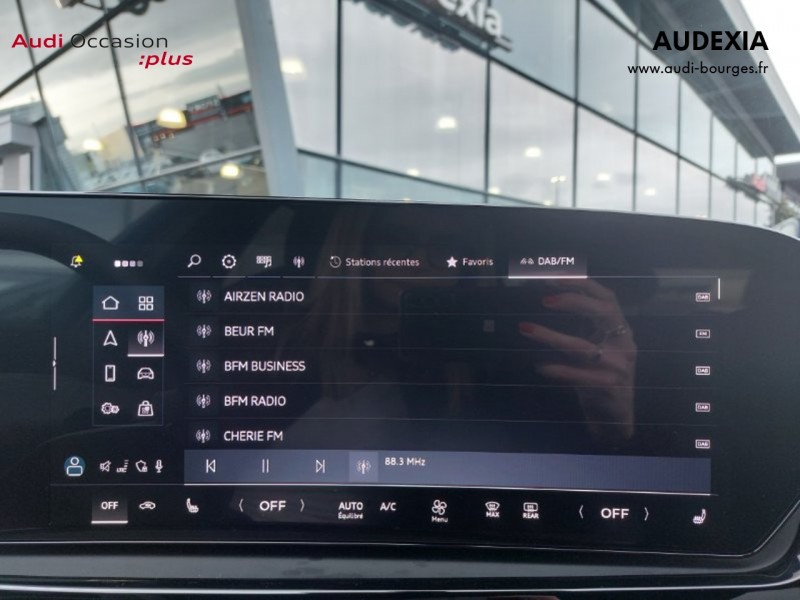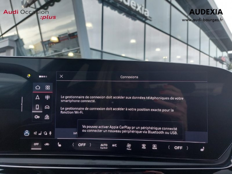 Pack Tech – Caméra de recul – Régulateur de vitesse adaptatif – Park assist plus – Système d'aide au stationnement plus – Projecteurs à LED plus – Assistant feux de route – Bloc de feux AR à LED pro – Climatisation automatique 3 zones – Rétroviseur intérieur à réglage jour/nuit automatique – Rétroviseurs ext. réglables – Projection de logo sur le sol depuis les rétroviseurs extérieurs – Audi sound system – Audi Application Store et smartphone interface