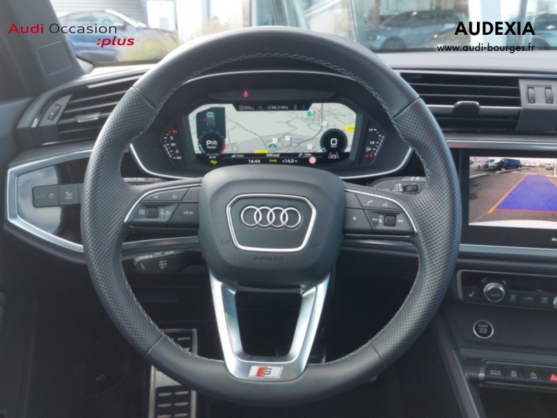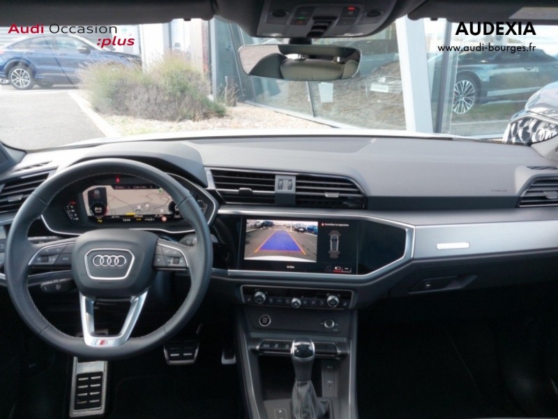 Pack S line intérieur – Sièges Sport AV – Sellerie en tissu/matériaux synthétiques monopur 550 et estampillage S line sur le dossier des sièges AV – Frein à main avec surpiqûres contrastées, couleur assortie à celle de l'habitacle – Surfaces d'accentuation sur la console centrale et poignées intérieures de portières à l'AV de couleur laque fine gris ardoise – Pédalier et repose-pied en acier inoxydable – Tapis noirs AV et AR avec surpiqûres contrastées gris roche