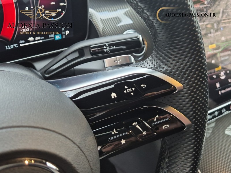Volant avec doubles branches horizontales, méplat dans la partie inférieure perforé dans la zone de préhension, avec cache et palettes de changement de rapport chromées argentées