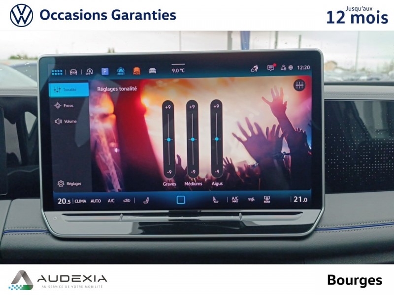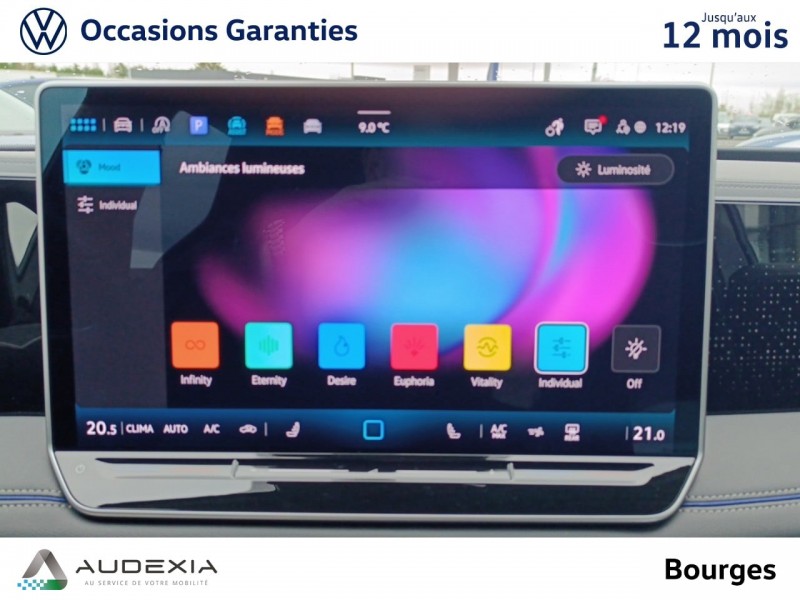 Drive Experience Control: Sélecteur de profil de conduite avec écran OLED tactile – Permet d'ajuster le volume, le profil de conduite ainsi que les "Atmosphères" – Appuyer sur le sélecteur pour afficher les profils de conduite, passez votre doigt sur l'écran tactile pour basculer sur le choix des "Atmosphères" – Des "Atmosphères" sont déja paramétrées dans le véhicule mais vous pouvez créer vos propres atmosphères en définissant une playlist, un affichage Digital Cockpit, un éclairage d'ambiance, un niveau sonore et une tonalité