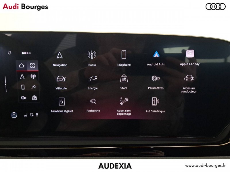 Pack Tech – Caméra de recul – Régulateur de vitesse adaptatif – Park assist plus – Système d'aide au stationnement plus – Projecteurs à LED plus – Assistant feux de route – Bloc de feux AR à LED pro – Climatisation automatique 3 zones – Rétroviseur intérieur à réglage jour/nuit automatique – Rétroviseurs ext. réglables – Projection de logo sur le sol depuis les rétroviseurs extérieurs – Audi sound system – Audi Application Store et smartphone interface