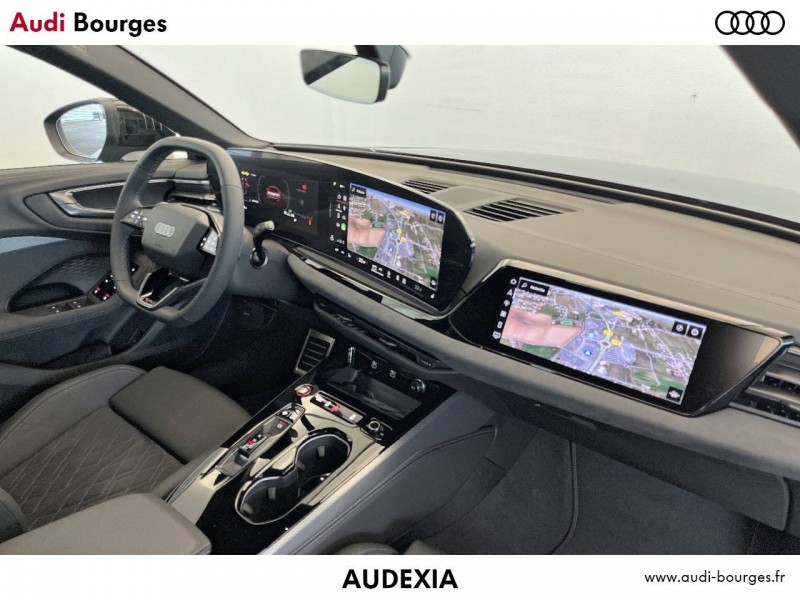 Navigation MMI avec MMI touch Le système de navigation MMI plus avec MMI touch offre : – l'écran panoramique MMI avec technologie OLED, comprenant l'Audi virtual cockpit plus avec écran de 11,9 pouces ainsi que l'écran MMI touch de14,5" – système de navigation avec affichage des cartes et guidage routier sur l'écran couleur haute résolution de 14,5" – mise à jour des cartes en ligne – Affichage de cartes en 3D montrant de nombreux sites d'intérêt – informations routières en ligne – MMI search – MMI touch