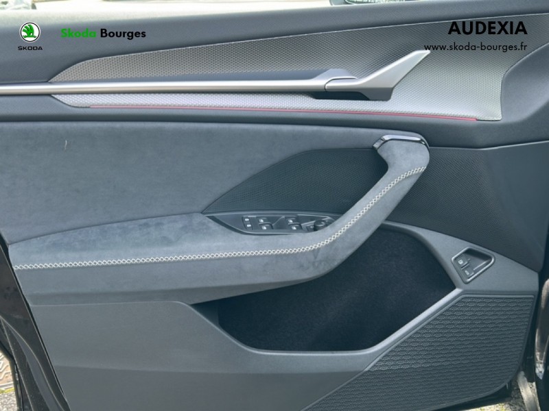 Design intérieur SportLine sellerie tissu suédine noir perforé avec bande blanche au milieu et matériau synthétique noir